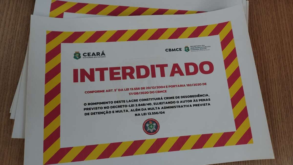 A ação foi embasada no artigo 5º da Lei Estadual nº 13.556/2004, que autoriza o CBMCE a adotar medidas cautelares imediatas, como a interdição do local, quando constatado risco iminente à segurança das pessoas, do patrimônio ou do meio ambiente.