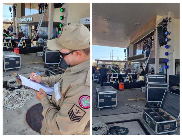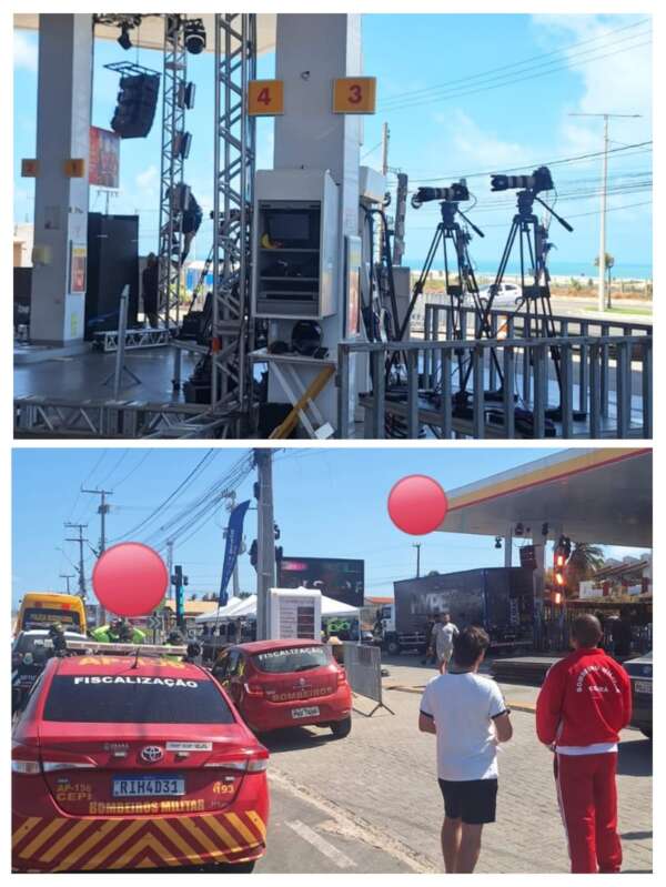 O Corpo de Bombeiros Militar do Estado do Ceará (CBMCE) realizou, na noite deste sábado, a interdição cautelar de um evento irregular que seria realizado em um posto de combustível no município de Aquiraz, onde estava prevista a realização de uma festa com música dançante. A atividade, além de não possuir as medidas de segurança contra incêndio e pânico exigidas, é expressamente proibida em áreas que armazenam líquidos inflamáveis, conforme normas vigentes de prevenção. Também fora constatado que o projetista responsável não apresentou, no projeto técnico, as informações sobre a edificação ser um local de revenda de inflamáveis de uso ocupação G-3 conforme NT 14/2024 CBMCE.
