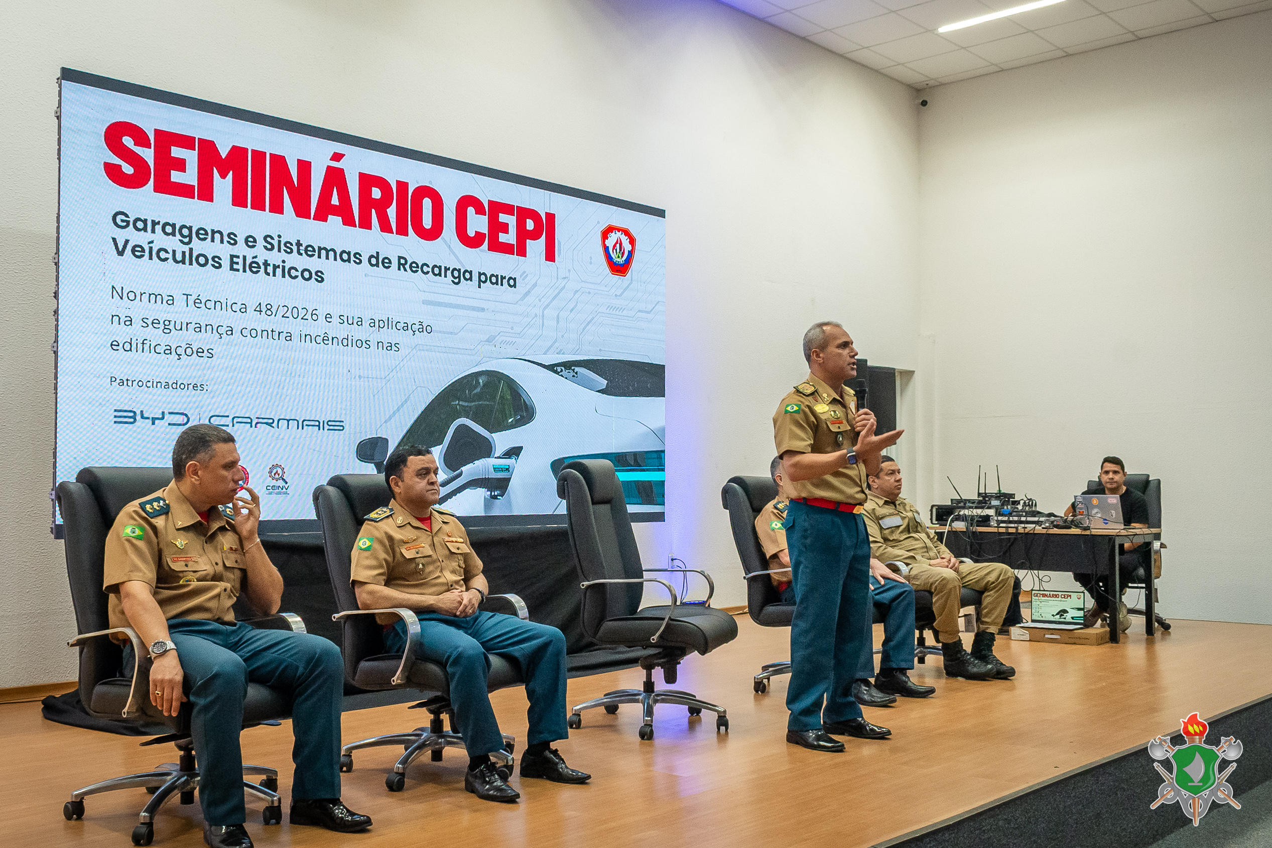 O Corpo de Bombeiros Militar do Estado do Ceará (CBMCE), por meio do Comando de Engenharia de Prevenção de Incêndio (CEPI), realizou no dia 12 de março o seminário “Garagens e Sistemas de Recarga para Veículos Elétricos: Norma Técnica 48/2026 e sua Aplicação na Segurança contra Incêndios nas Edificações”. O evento reuniu especialistas da corporação, autoridades e profissionais da área para discutir os desafios e as novas diretrizes de segurança relacionadas ao crescimento do uso de veículos elétricos.